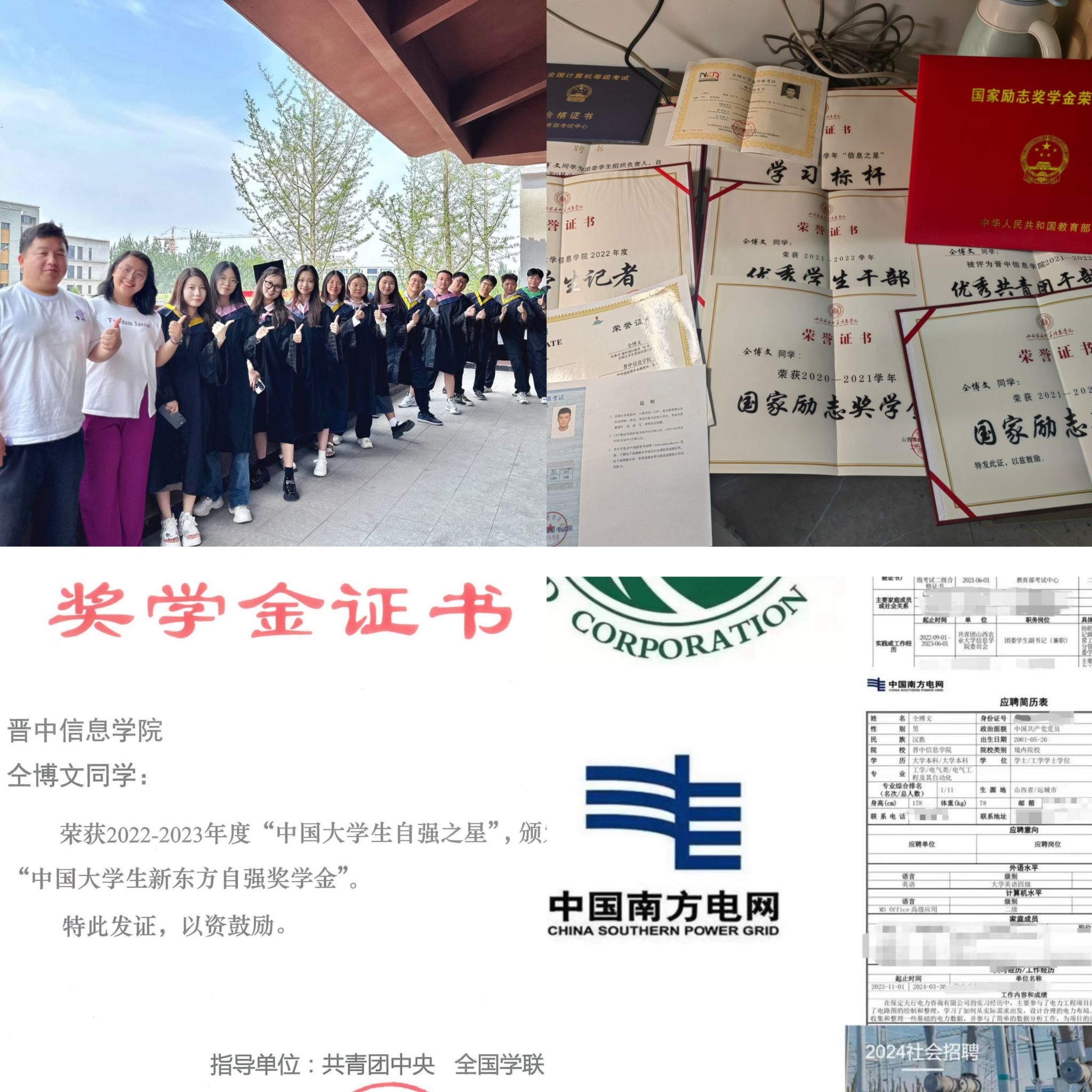大四这一年,像人生赛道上的关键转折点,一边是即将落幕的校园时光,一边是充满未知的职场征程。怀着对电力行业的憧憬与“试一试”的勇气,我毅然踏上了求职之路,把目标瞄准了行业内多家实力雄厚的企业——国家电网、南方电网、内蒙古电力集团、国家能源集团,甚至还大胆尝试了与专业领域有一定关联的山西昆明烟草有限责任公司招聘。彼时的我,既期待能拿到心仪的offer,也深知这场求职之战必然充满挑战,而支撑我勇往直前的,正是大学四年在远景学院积累的底气。准备简历时,我翻出了四年间的获奖证书,才惊觉那些看似平常的经历,早已成为求职路上的“宝藏”,作为一名民办院校的学生,也同样可以通过世界500强企业的网申,与一众双一流院校毕业生同场竞技。