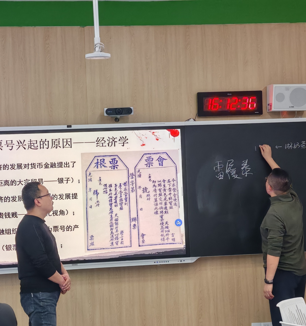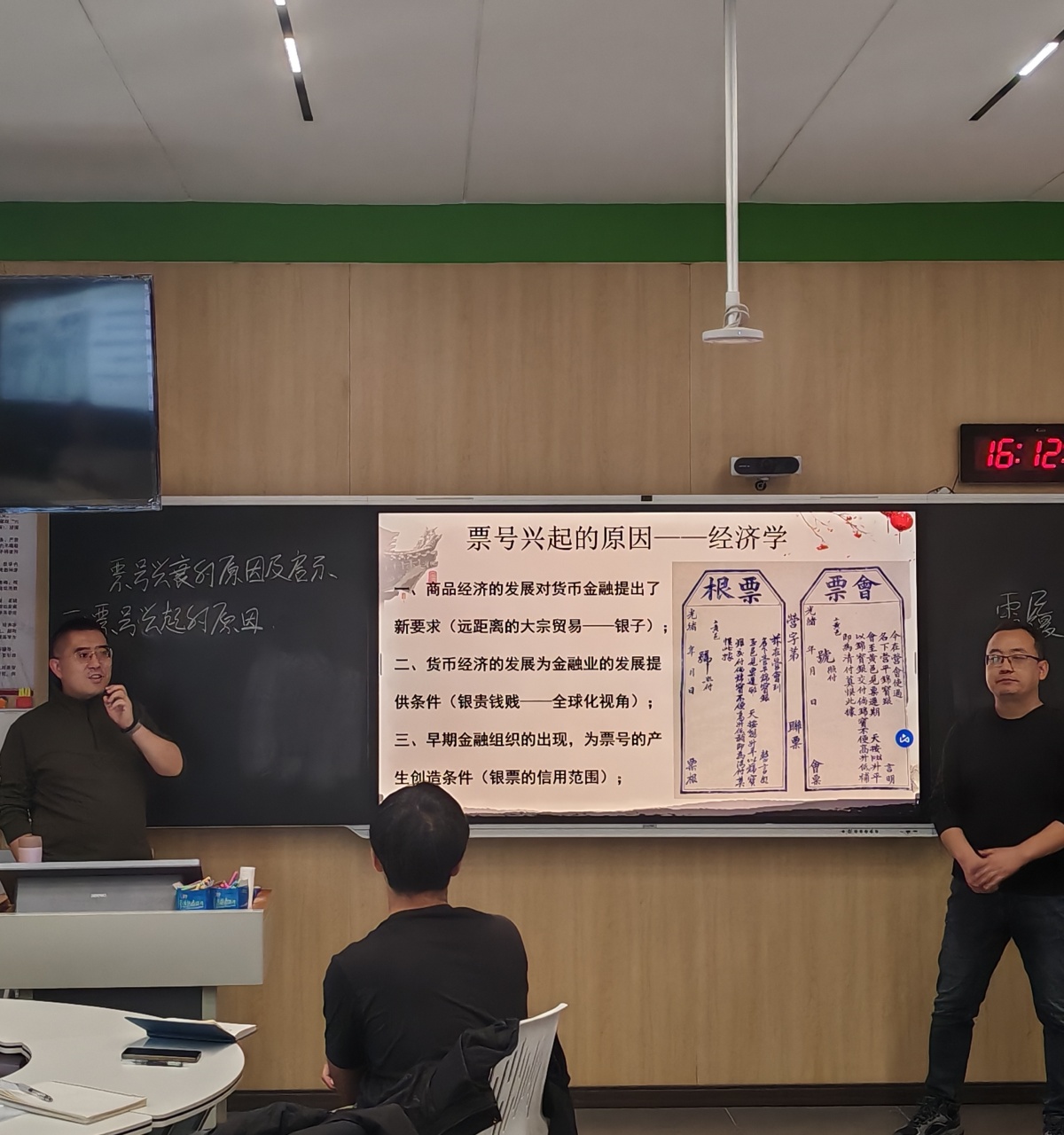 赵云老师从经济学视角剖析其必然性。他首先提问:“同学们认为贸易中最便利的支付方式是什么?”随后层层推进,指出票号兴起的三大基础:商品经济发展催生对大额安全汇兑的需求;货币经济的成熟为金融业态创造条件;钱庄、当铺等早期金融机构的出现奠定行业基础。张亚杰老师补充道:钱庄与票号本质相通,区别在于汇兑范围——前者主攻同城,后者专司异地。他从历史角度点出两个关键偶然因素:白莲教起义导致商路不畅,迫使晋商寻求更安全的资金交割方式;而西裕成颜料铺东家李大全一次仗义助友的偶然行为,被大掌柜雷履泰敏锐捕捉,转化为开创票号业的重大商机。