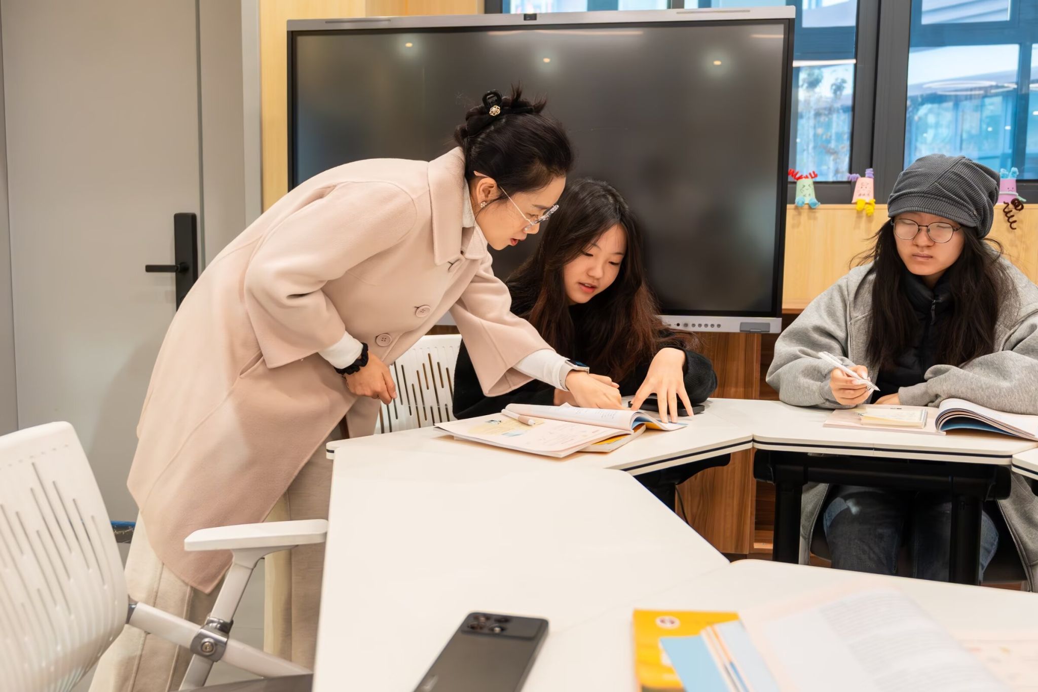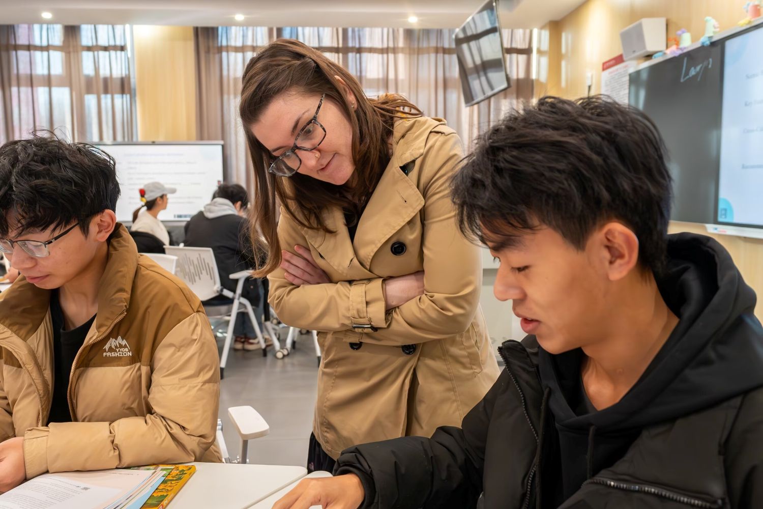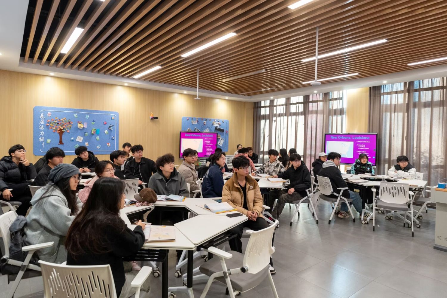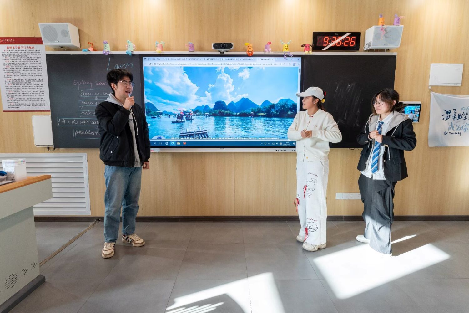 近日,远景学院《大学英语》课堂开展了一场双师教学活动。本次活动由中方教师与美国外教Lauryn共同设计并组织实施,以“跨文化对比”为主线,通过沉浸式任务引导学生开展小组协作与英文表达,展现了学院国际化、小班化教学的特色。