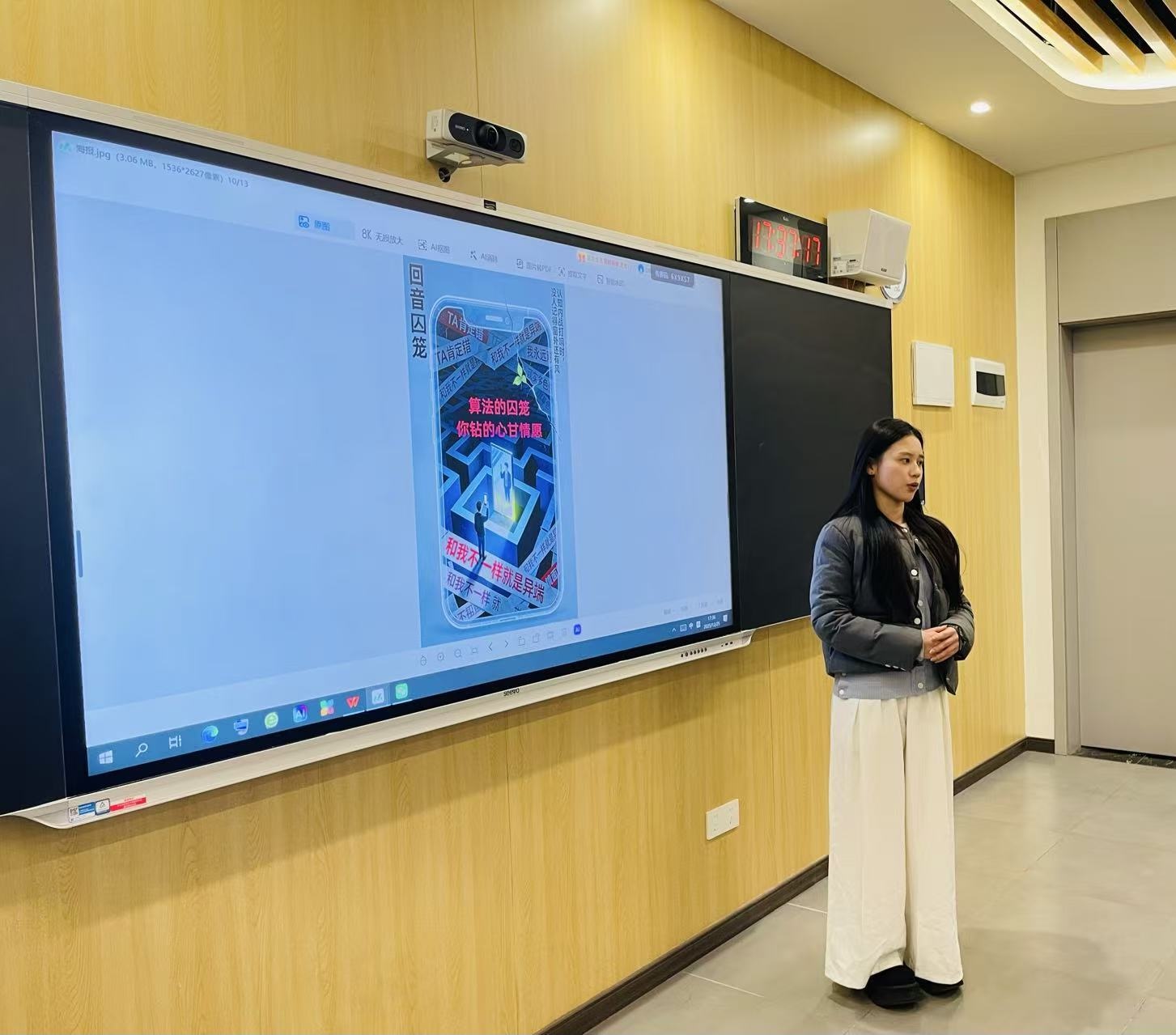 在课程汇报中,同学们展现出敏锐的社会观察力与丰富的创造力,作品紧密联系实际,发人深省。