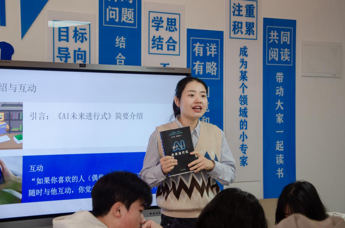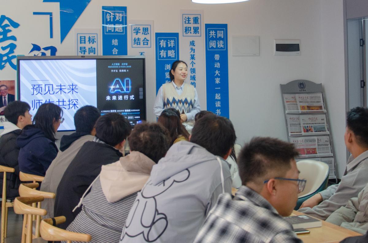 10月31日中午,远景阅览室内,一场以“预见未来:师生共探《AI未来进行式》”为主题的读书分享会在此举行。在程荣荣老师的引导下,同学们以该书第五章内容作为切入点,展开了深入讨论与思考。