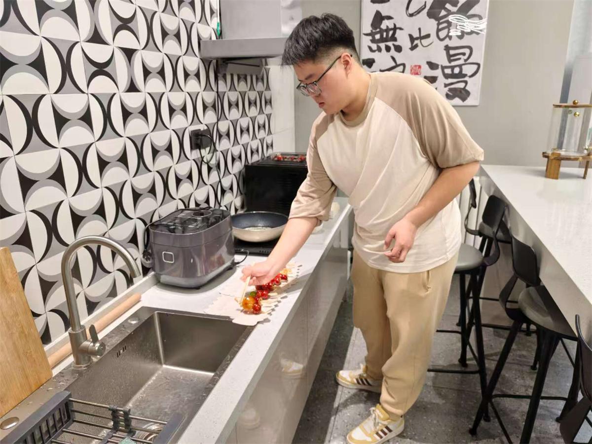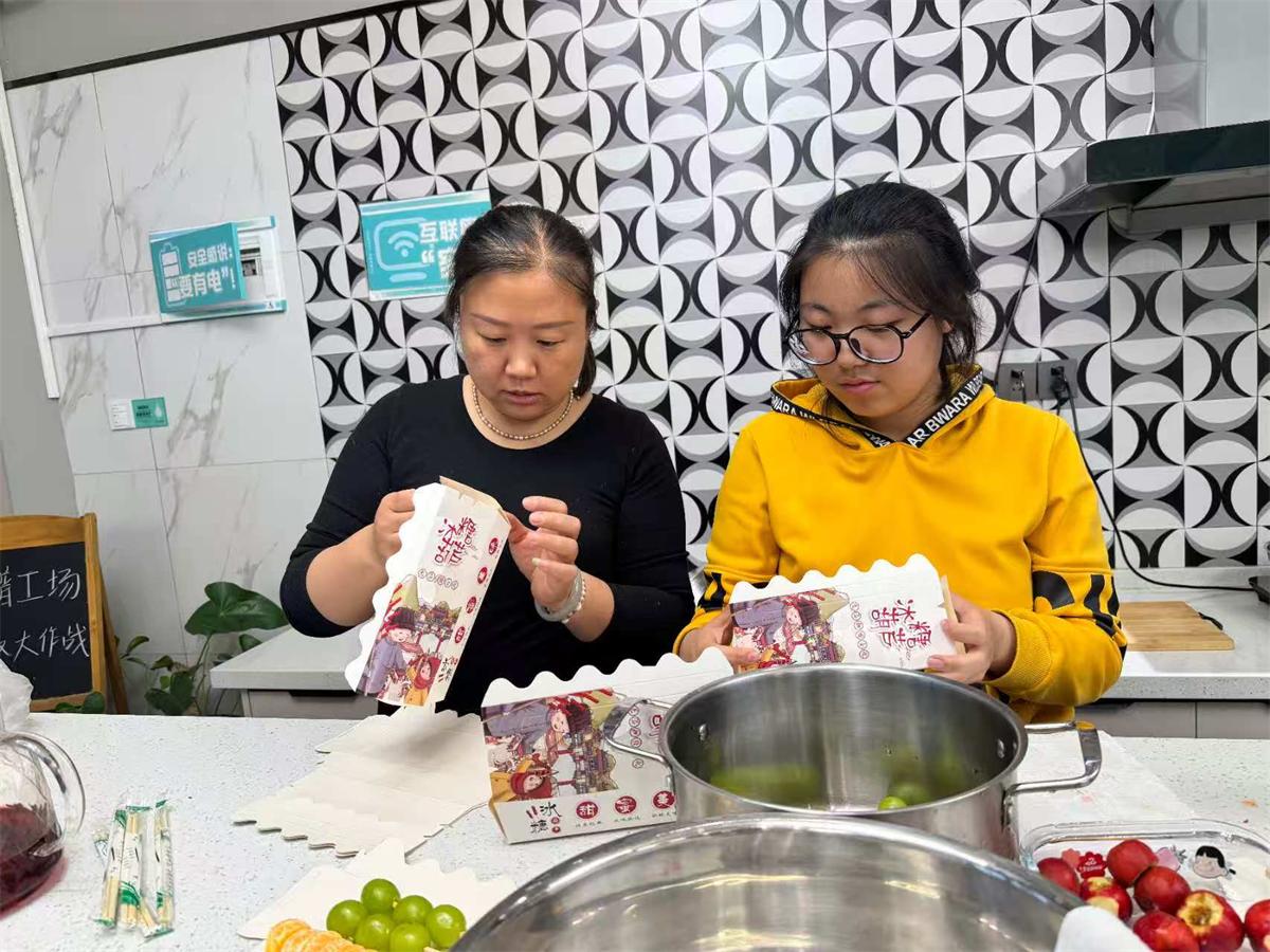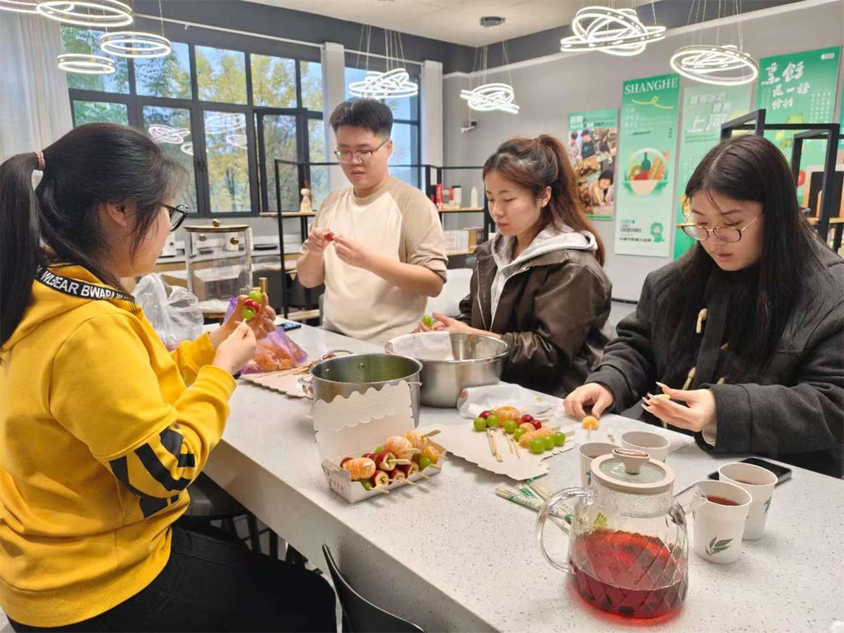 活动在温馨的创意烘焙中拉开帷幕。同学们首先投入了蛋糕的DIY创作。大家发挥想象力,用奶油和糖霜在蛋糕上绘制出冬日意象,或写下寄语,以甜蜜的创作开启暖冬之旅。随后,杨老师以立冬“补冬”的习俗引入,着重介绍了冰糖葫芦的文化寓意:其火红的外观象征着红火的生活,甜蜜的糖衣包裹着山楂的微酸,恰似生活的本质,甜中有酸,回味悠长。接下来的糖葫芦DIY环节将现场气氛推向高潮。同学们巧手翻飞,不仅串起了山楂、草莓等各色水果,更串起了欢声笑语与团队协作的乐趣。
