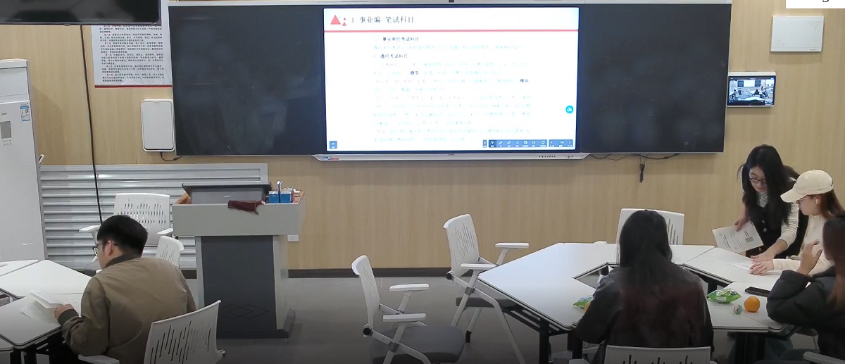随后的互动环节瞬间“点燃”全场!“老师,跨专业考研需要注意什么?”“公务员面试真的那么难吗?”……同学们的问题一个接一个,许老师则见招拆招,耐心地为大家一一解惑,还送上了个性化的备考小贴士。更惊喜的是,许老师还带来了“秘密武器”——真实的考编真题!当同学们传阅着试题时,抽象的考试立刻变得具体起来,“原来考编的题目是这样的!”