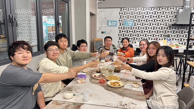 共膳不仅是味觉的盛宴,更是情感与思想的交流。从晚上六点到九点,三个小时的时光在轻松愉快的氛围中悄然流逝。师生围坐一堂,畅谈学业进展与生活点滴,不同年级的同学也借由这次机会加深了解,建立起跨越年级的友谊。