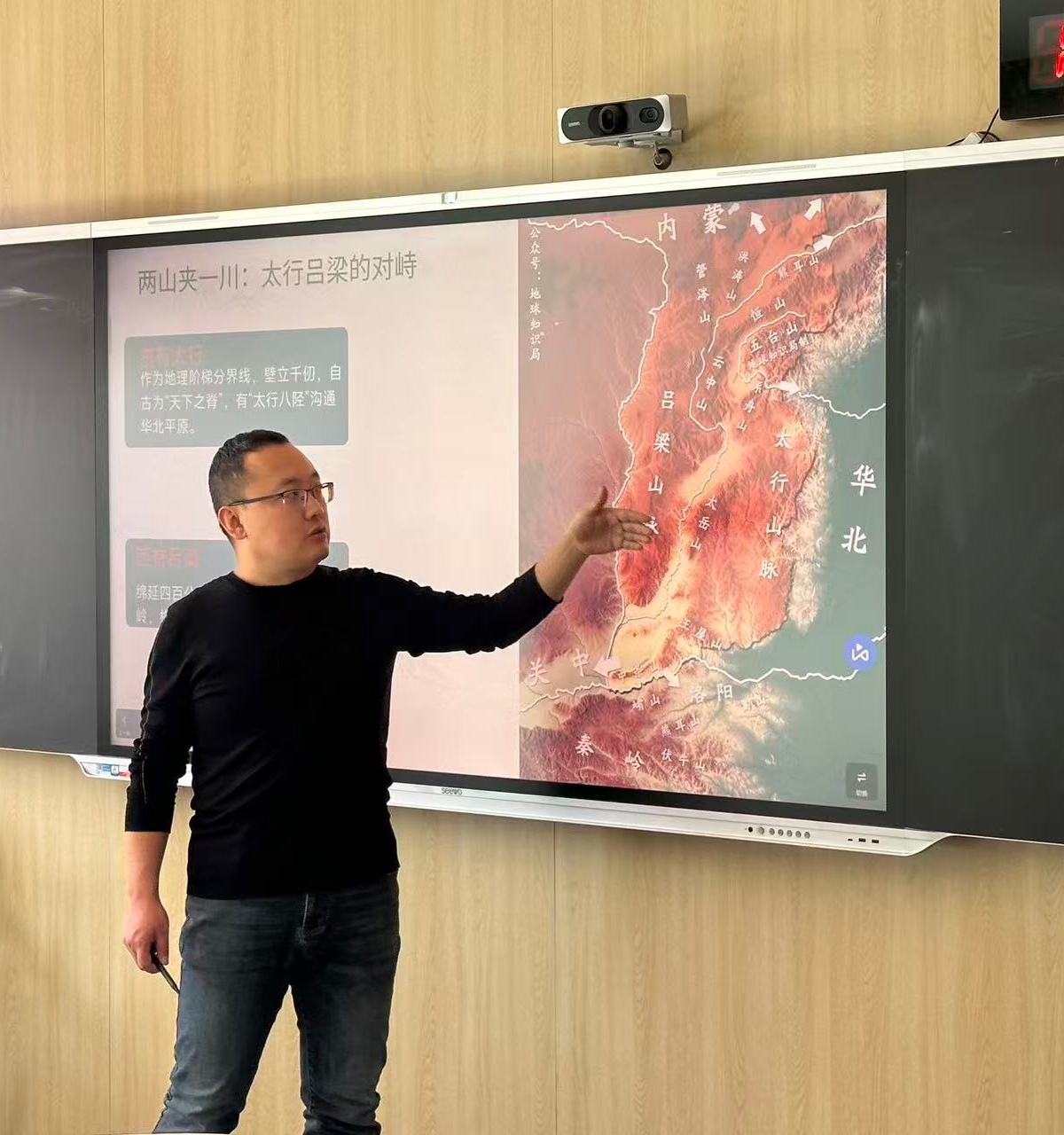 你以为山西只有黄土高坡?张老师用一系列“硬核”景观彻底颠覆了我们的认知。张老师以壶口瀑布的奔腾怒吼、王莽岭挂壁公路的穿云破壁、万年冰洞的冰火共生、五台山的清凉圣境,彻底打破了同学们对山西的刻板印象。他强调,山西是一座天然地质公园,其地貌类型占全国三分之一,是自然与人文交织的奇迹之地。
