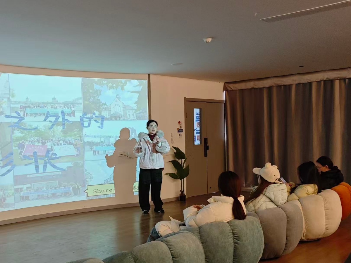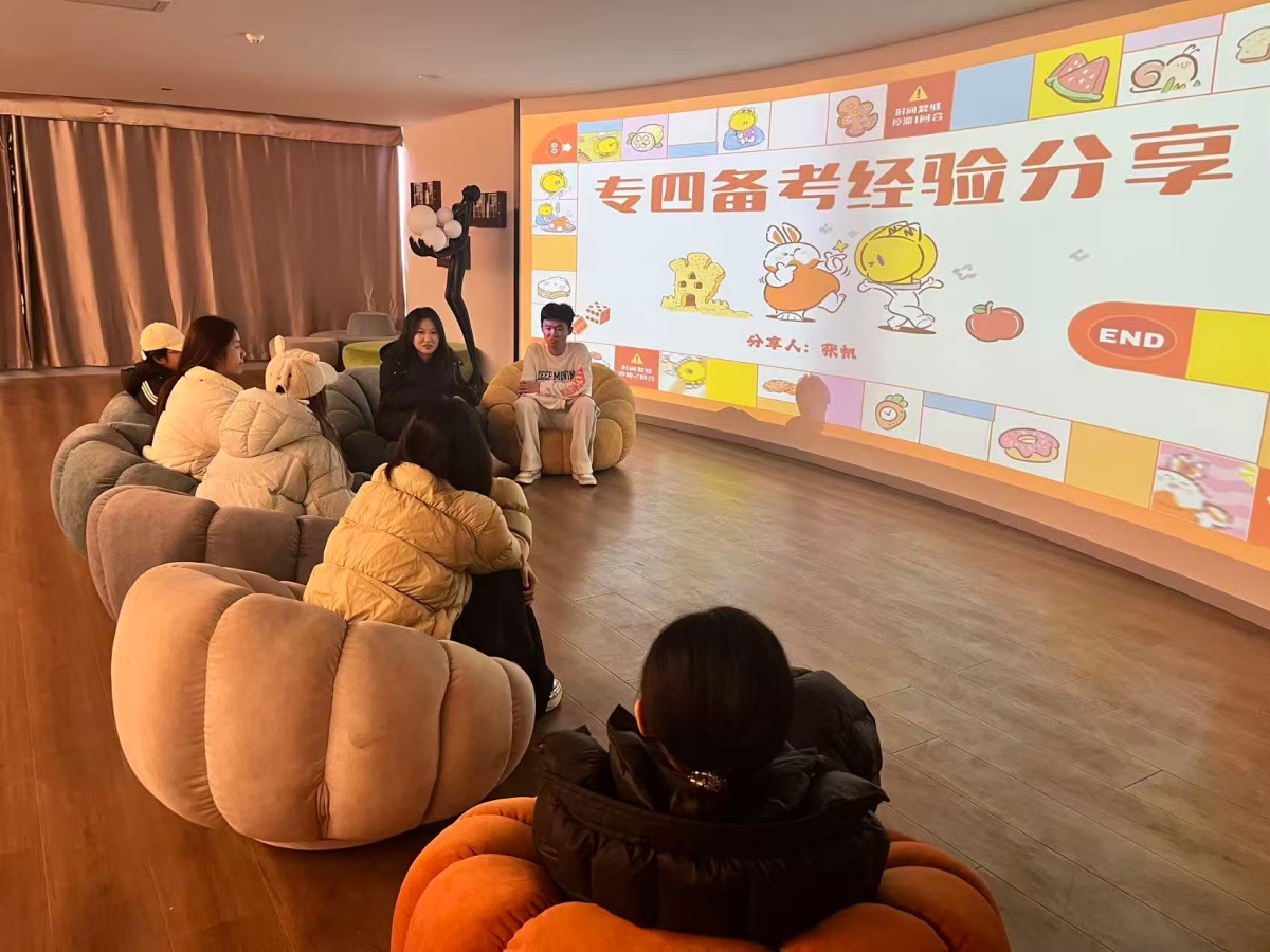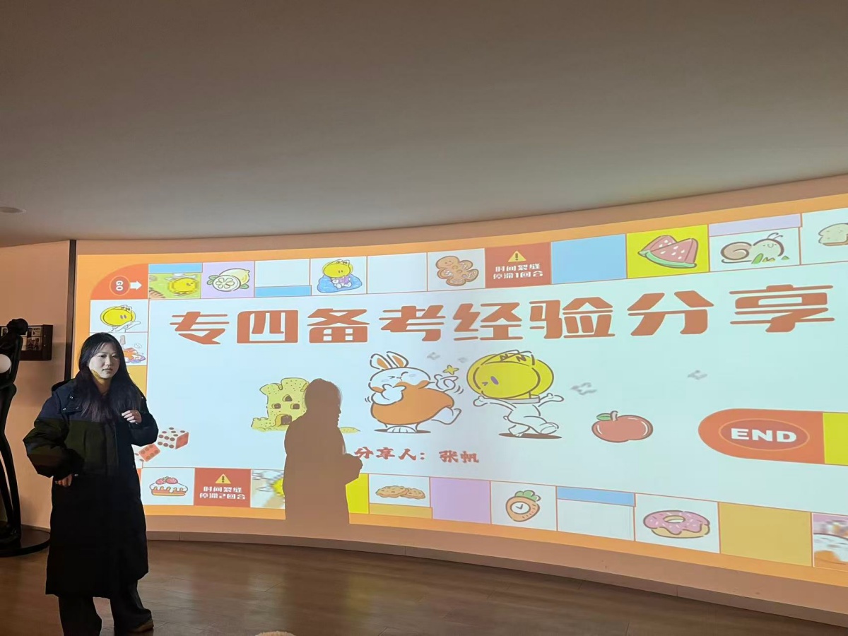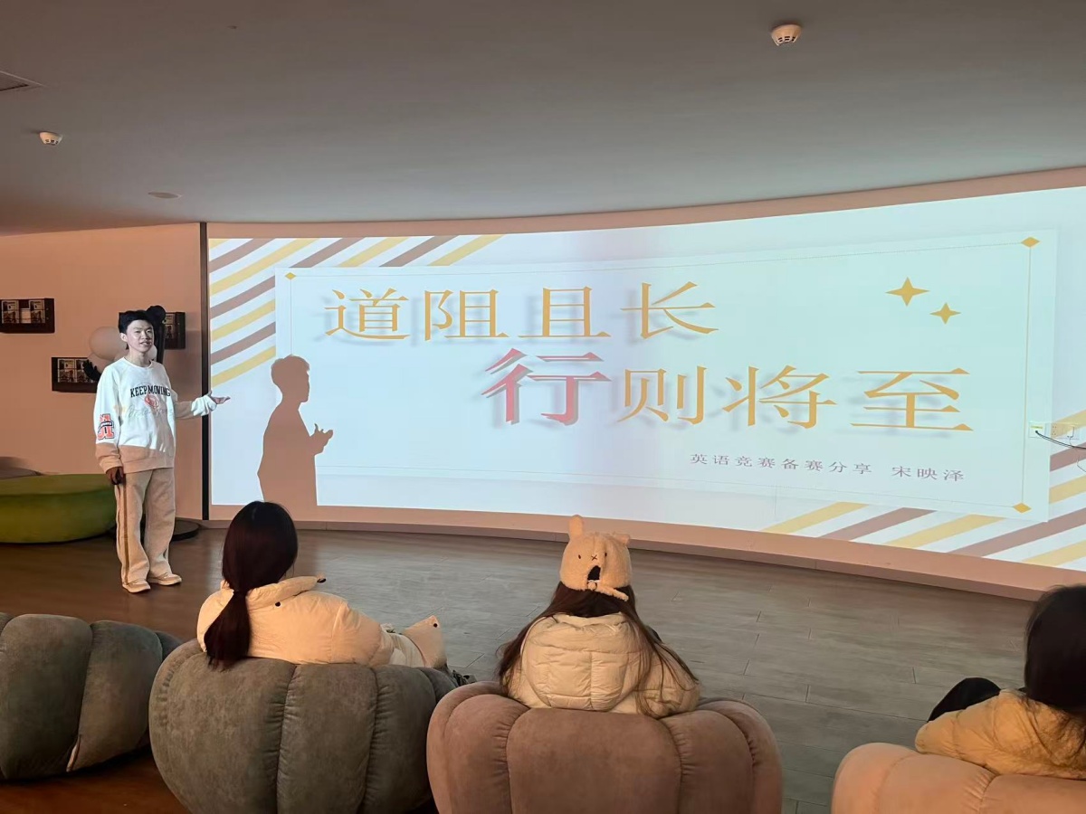近日,赵晨倩老师导师团队组织了一场朋辈交流活动,邀请大三学生宋映泽和张帆为大一、大二的同学们分享出国交流、学科竞赛以及专四备考等方面的宝贵经验。