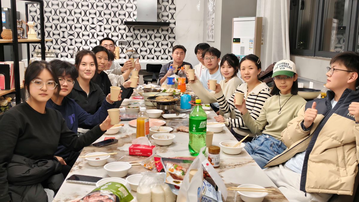 大家的话题也不乏学习与工作。组织活动、考研考公、专业方向,不同年级的同学交换着困惑与收获,这场聚会不仅是味蕾的满足,更是心灵的联结。从青涩的大一新生到即将毕业的准职场人,从课程难题到学生工作的琐碎,在氤氲的烟火气里,每个人都找到了倾诉的出口,也收获了前行的底气。