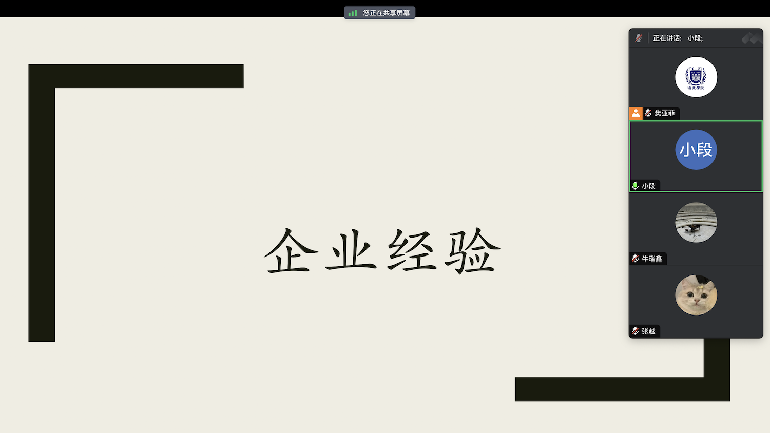 毕业季将至,为帮助应届毕业生破解考研、考公、求职路上的困惑,明晰发展方向,近日,远景学院导师牵头组织了一场主题鲜明的线上经验分享会。分享会通过腾讯会议形式举办,特邀三位优秀职场人——考研成功上岸的学姐、顺利考取公务员的学长及汽车行业大厂从业者,分别围绕“考研心态调整”“考公做题秘诀”“企业应聘简历写作”三大核心议题,倾囊相授实战经验,为樊亚菲导师组的毕业生送上了一份“干货满满的成长指南”。