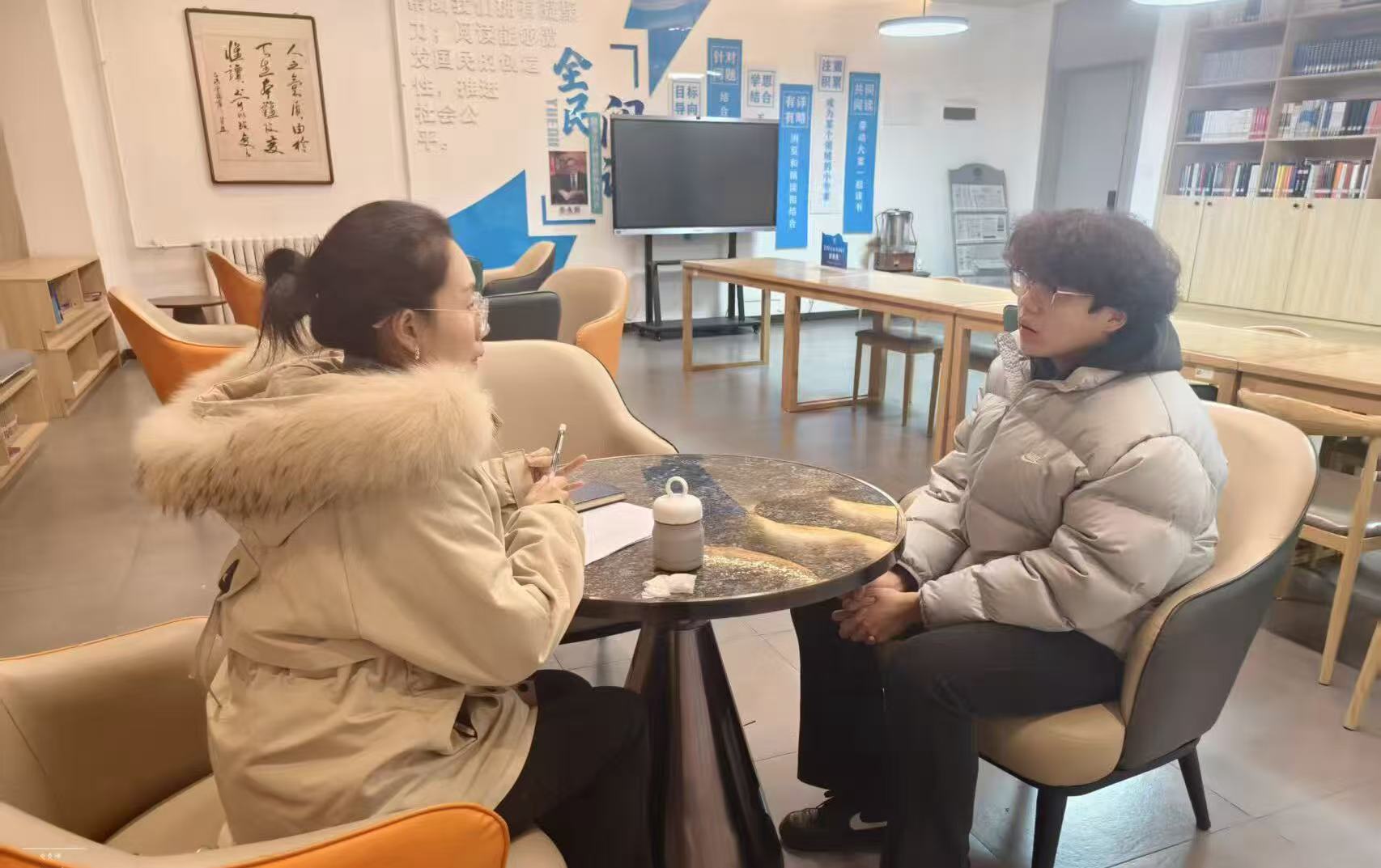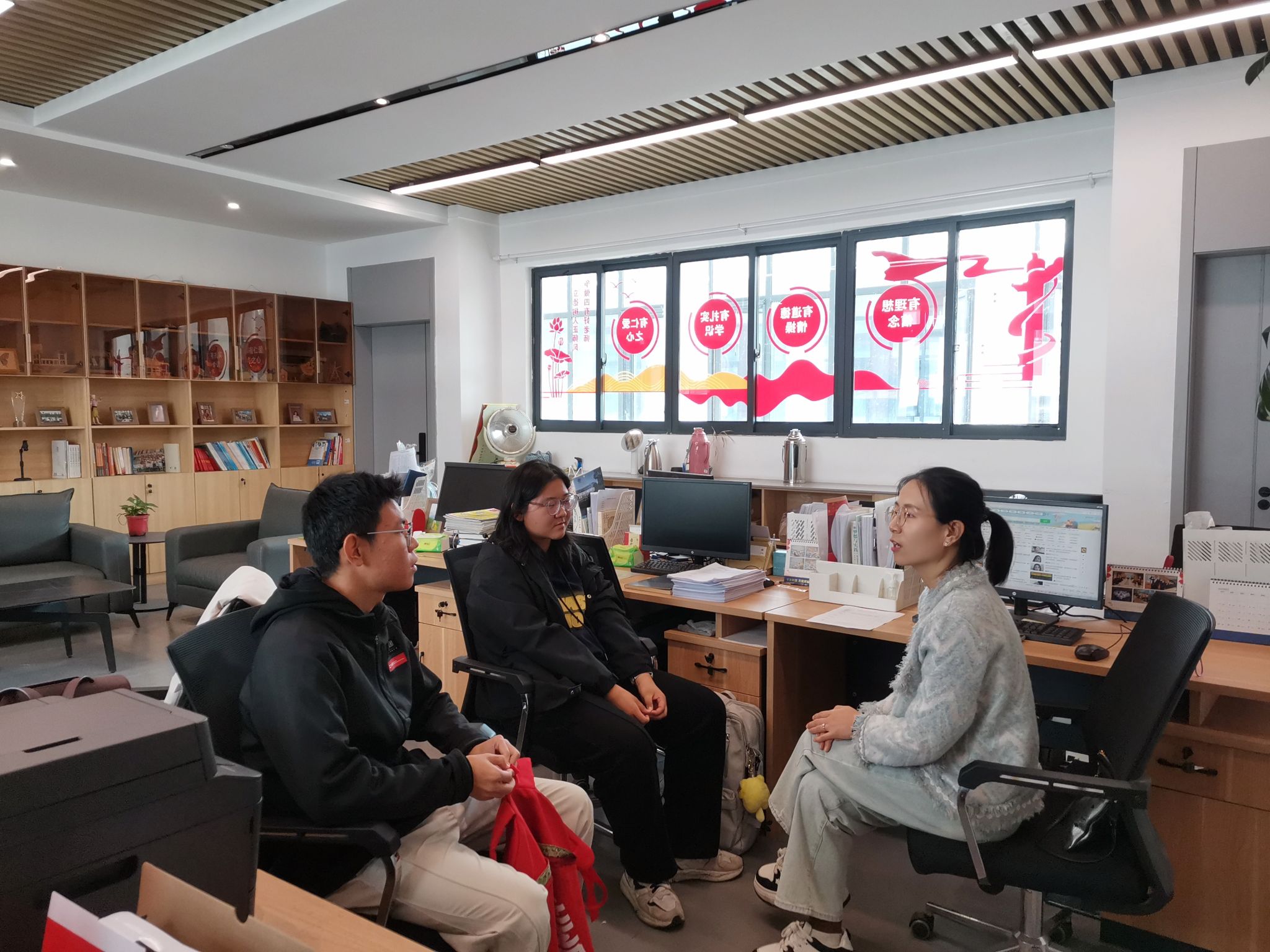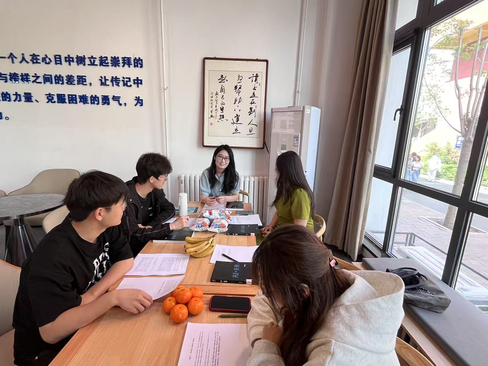 在成长与心灵关怀上,扮演“陪伴者”与“守护者”。Office Hour最温暖的意义,在于它提供了一个安全的心灵港湾。赵晨倩老师将四六级辅导与谈心谈话巧妙结合,在关注成绩的同时更关心学生的压力与情绪。特别是在赵若男、郝崇伶老师休产假期间,杨晓玲、王哲仁老师无缝衔接的承接,确保了学生“不被中断的关怀”。这种持续的陪伴感,让学生敢于流露困惑与脆弱。正如一位学生所言:“知道每周都有一个固定时间可以找到老师,说说学习,也聊聊生活,这种感觉很踏实,让我觉得在这个大校园里不是独自一人。”