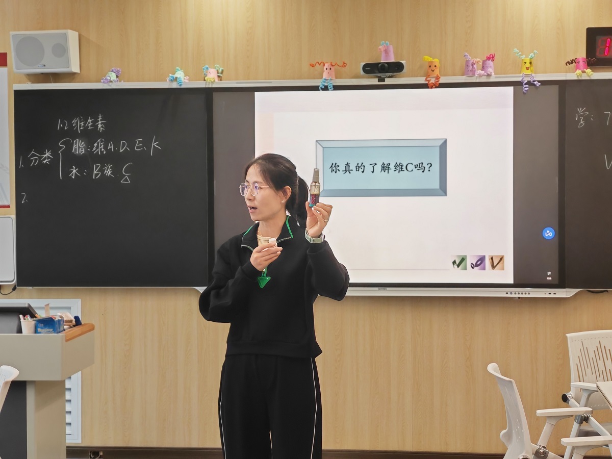 在通识课化学与人类生活课堂上,一项关于维生素C还原性的探究实验立刻激发了同学们强烈的求知欲和探索精神,同学们渴望通过这次实验,亲自揭开维生素C背后的神秘面纱,一窥其奥妙。