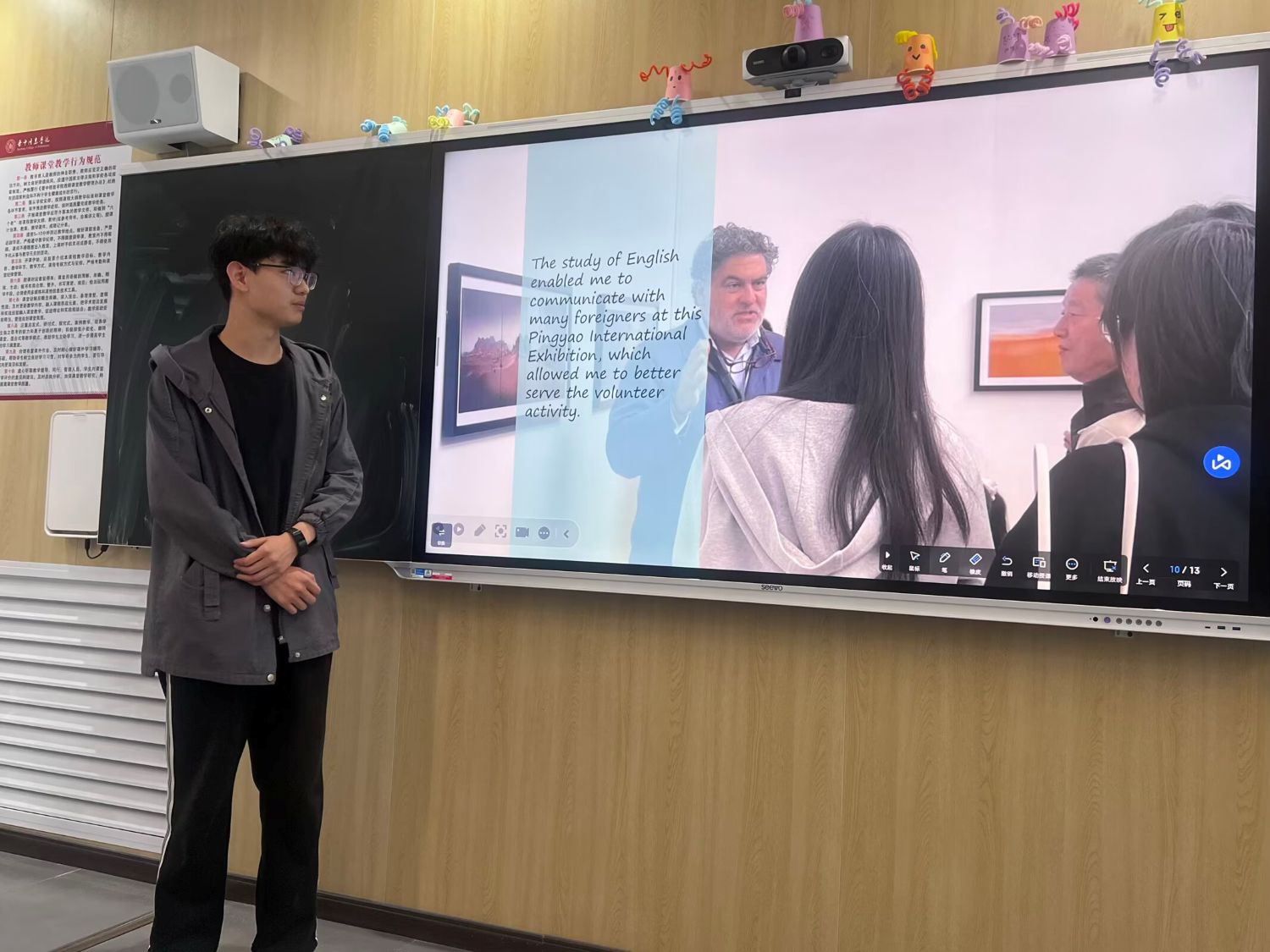 近日,平遥国际摄影展落下帷幕,晋中信息学院远景学院学生志愿者团队圆满完成服务工作。返校后,平静老师邀请志愿者们以英语分享复盘志愿服务经历 —— 这一分享是老师此前提前布置的任务,通过 “实践 + 复盘” 的形式,将实践所得与英语学习深度融合,既呼应了实践教学要求,也生动诠释了远景学院 国际化的育人特色。
