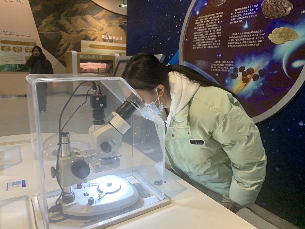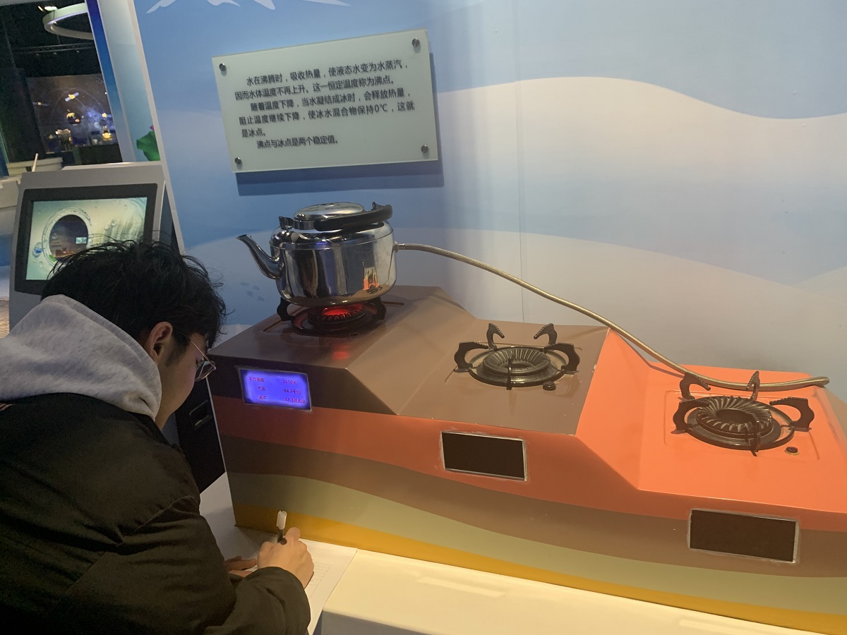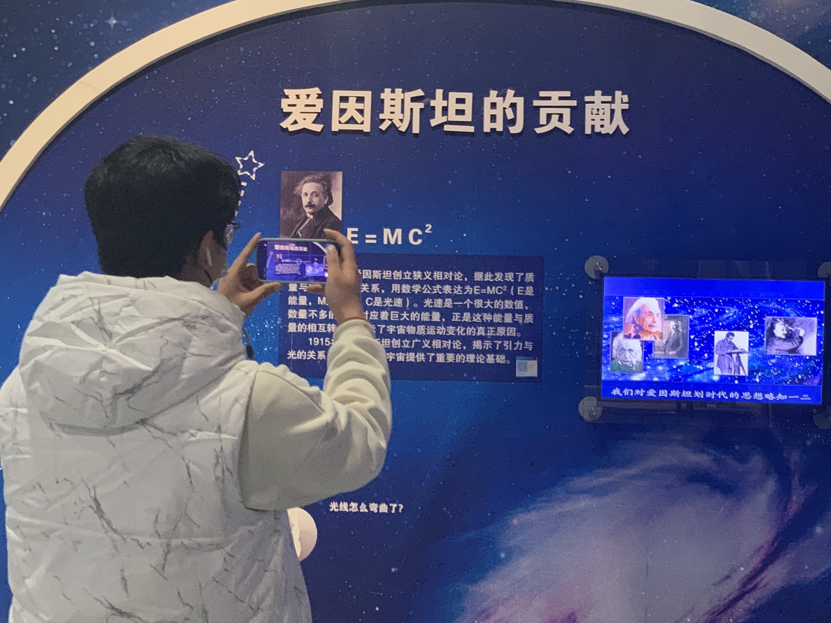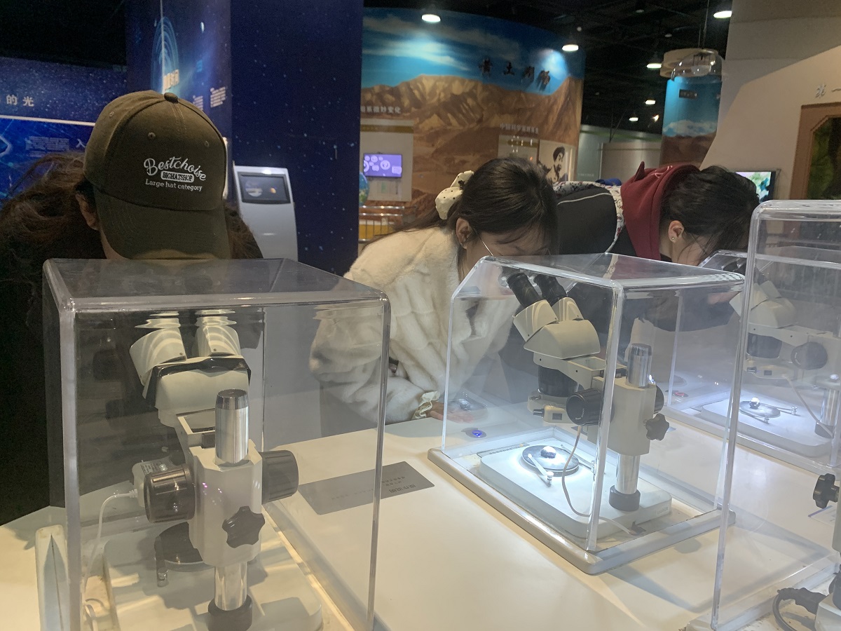 活动伊始,课程教师许永红明确了本次研学的目标与任务,将学生分为三个小组,分别聚焦于“宇宙与生命”“机器与动力”“走向未来”三大物理主题展厅。同学们沿着展厅的叙事脉络,在丰富的模型、互动装置与多媒体展示前驻足观察,从宏观宇宙到微观生命,从传统机械到未来能源,物理学的原理与应用无处不在。在“宇宙与生命”展厅,同学们凝视星图,模拟天体运行;在“机器与动力”展厅,他们操作机械模型,感受能量转换;在“走向未来”展厅,他们探讨碳循环与太空探索的前沿议题。每一件展品都成为理解物理概念、连接理论与现实的生动媒介。