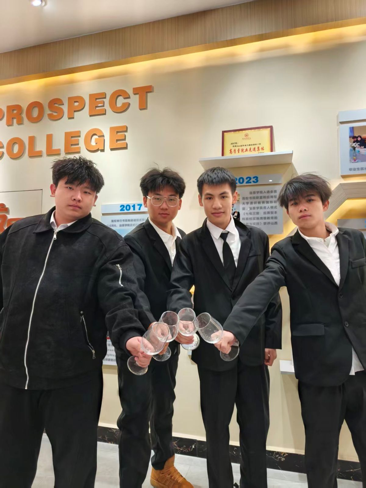 课程尾声,身着正装的同学们以小组为单位定格合影。镜头里,挺直的脊背、舒展的眉眼、得体的笑容,构成了一幅兼具青春朝气与优雅气质的画卷。这张合影,不仅是实践课的纪念,更是美育成果的见证。