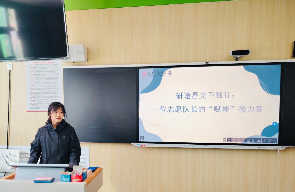 分享会现场,崔晨多次提及远景学院对她的影响:“学院的通识教育让我具备跨学科思维,小班教学让我敢于提问,导师制让我获得个性化指导。”她特别提到导师的鼓励:“当我因志愿服务与备考冲突而焦虑时,导师告诉我能力是相通的,志愿服务中培养的领导力,正是研究生阶段需要的。”